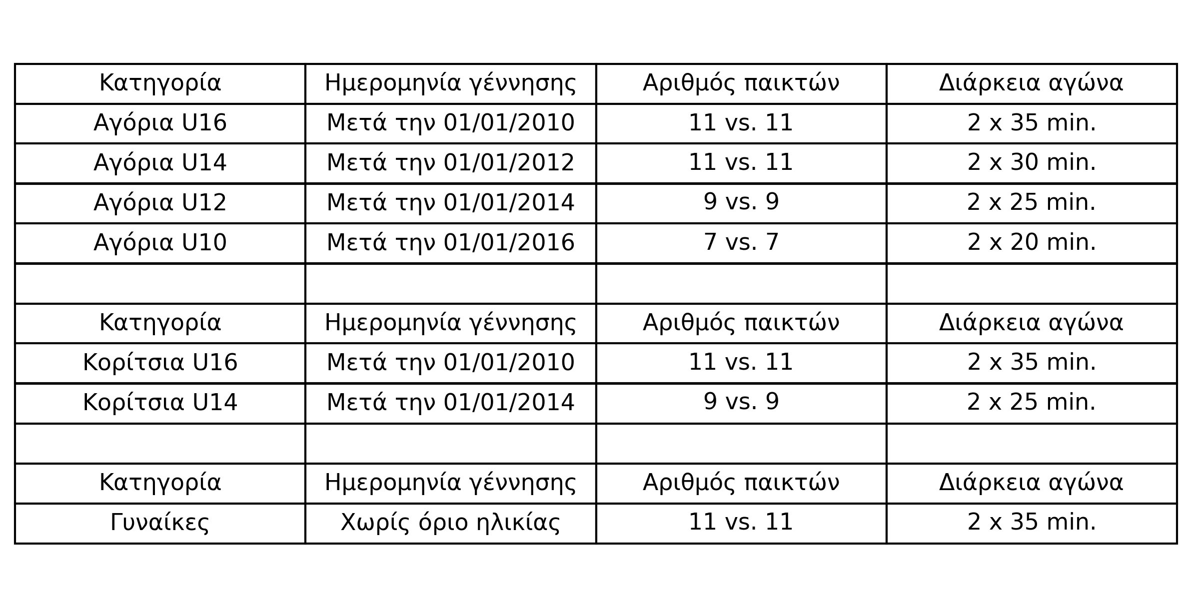 - Ηλικιακές Κατηγορίες Αγόρια: Αγόρια: U10, U12, U14, U16
